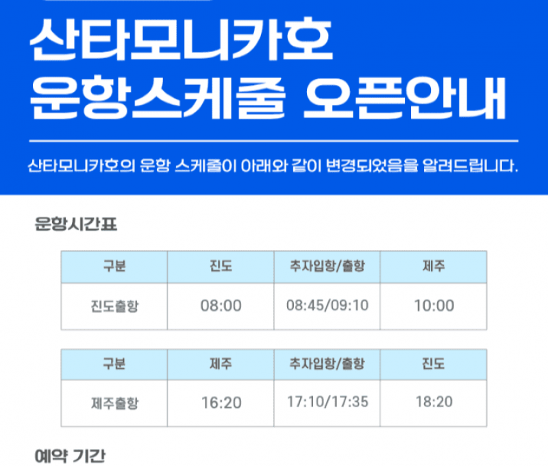 산타모니카 운항 스케줄 오픈안내